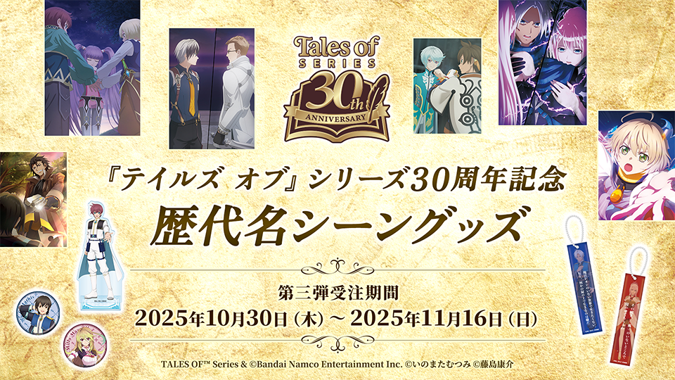 - 『テイルズ オブ』シリーズ30周年記念 歴代名シーングッズ第三弾 受注受付中!