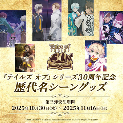 - 『テイルズ オブ』シリーズ30周年記念 歴代名シーングッズ第三弾 受注受付中!